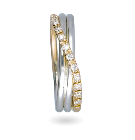 in tutti i colori dell'oro (bianco, giallo e rosa), fedi bicolore o tricolore, fedi in platino.