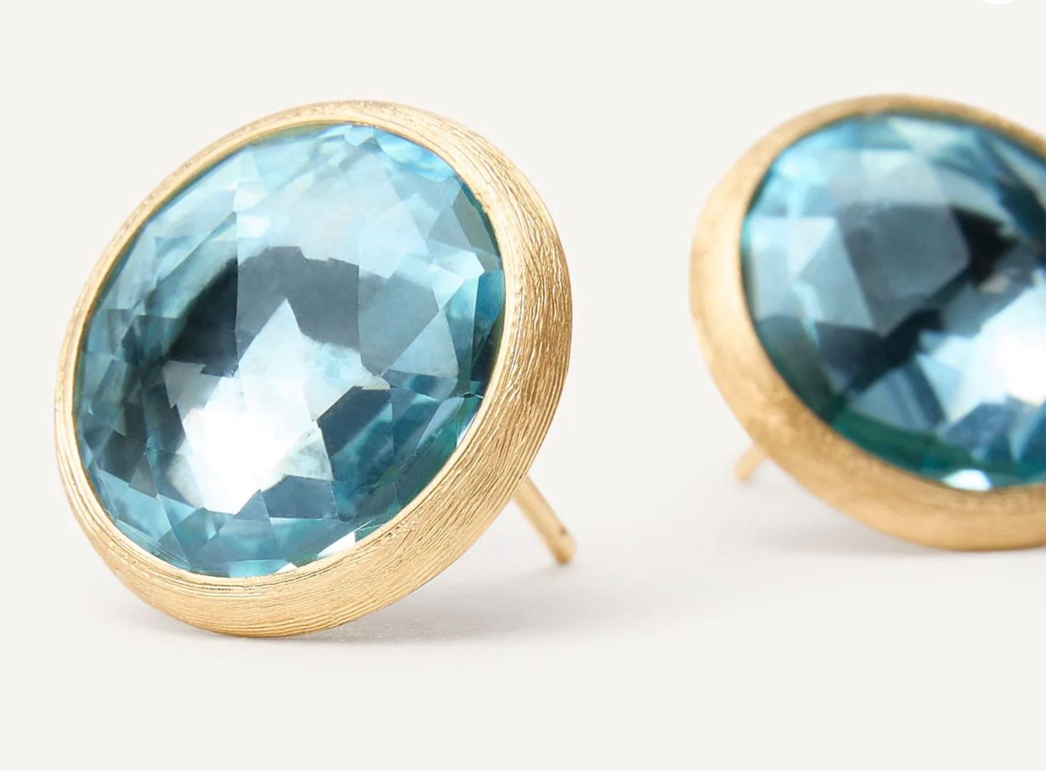 Versione oversize dell’iconico orecchino a stud della collezione Jaipur. Questo orecchino è caratterizzato da una coppia di selezionatissimi topazi azzurri.